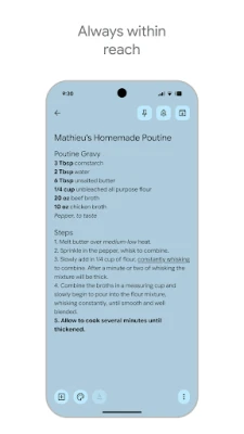 **Keep** manhaja ce ta musamman da aka kirkira domin adana duk wani tunani ko ilhama da ya zo maka a kowane lokaci. Ko kana buƙatar rubuta gajeren sako, ɗaukar hoto na wani abu mai mahimmanci, ko kuma yin rikodin sauti yayin da kake tafiya, Keep yana nan don taimaka maka. Tare da kayan aikin sa na musamman da aka shirya don wayoyi da kwamfutoci, har ma da agogon Wear OS, zaka iya kama tunaninka cikin sauri ba tare da wata damuwa ba. Ba zai taɓa yiwuwa ka manta wani muhimmin abu ba, saboda yanzu duk tunaninka zai zauna a wurin da yake dace da kai.