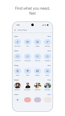 Wani fasalin Keep mai ban mamaki shi ne damar raba ra'ayoyi da bayanan kula tare da abokai da iyali. Ko kuna shirin jerin siyayyar ku na gida ne ko kuma kuna tsara tafiya ta gaba, Keep yana ba ku damar yin aiki tare da wasu a kan bayanan kula. Don nemo abin da kuke buƙata da sauri, zaka iya sanya launi da lakabi daban-daban ga rubutunka, wanda zai taimaka maka wajen tsarawa da sauƙi. Kuma idan ka buƙaci nemo wani abu da ka adana a baya, bincike mai sauƙi zai fitar da shi nan take. Zaka iya manna mahimman bayanan kula a farkon shafin wayarka ko kwamfutarka ta hanyar kayan aikin musamman.