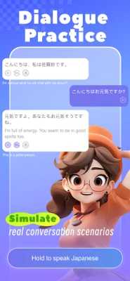 Da wannan manhaja, zaku ji daɗin kiran murya kai tsaye tare da AI. Yana ba ku damar yin magana da Jafananci kuma ku sami martani nan take, wanda ke taimaka muku gyara kurakuranku nan take. Wannan tsari mai ma'amala yana tabbatar da cewa kowace kalma da kuka furta tana samun ingantaccen jagora, don haka za ku iya gina amincewa da sauri yayin da kuke ci gaba.