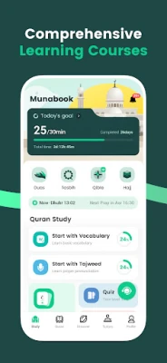 Munabook ya tanadi hanya mai matakai-matakai don ka samu nasarar karatun Alqur'ani. Farawa da zaɓar burinka – ko karatun Alqur'ani, ko haddacewa, ko Tajweed, ko Qaida, ko Tafsir – za mu haɗa ka da malamin Alqur'ani ƙwararre wanda zai jagorance ka. Darussanmu an tsara su ne don dacewa da matsayinka, tare da horo na yau da kullum don inganta lafazin ka da kuma kwarjinin karatun. Kana da damar yin nazari akai-akai don tabbatar da cewa duk abin da ka koya da ka haddace ya zauna a tare da kai. Za a rika saita maka manufofin mako-mako da suka dace da lokacinka ko na ɗanka.