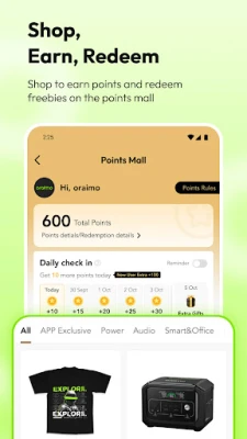 Manhajar oraimo store ta bambanta kanta da damammaki na musamman da take bai wa masu amfani da ita, kamar rangwamen talla da tayi na musamman waɗanda aka keɓe don masu amfani da app kawai. Bugu da ƙari, akwai tsarin "Points Mall" inda za ka samu maki a duk lokacin da ka yi siyayya, waɗannan makai za ka iya musanya su da kayayyaki kyauta ko rangwame mai yawa – burin kowane mai siyayya ya cika! Ka gano tarin kayayyakin fasaha masu yawa da suka haɗa da na'urori masu sawa, kayan aikin gida na zamani, na'urorin haɗi na wayoyin hannu, da kuma kayayyakin kula da kai, duk a wuri ɗaya. Kuma kada ka damu da rasa sabbin kayayyaki, domin manhajar oraimo store ce ke kawo maka sabbin abubuwa kai tsaye daga duniyar fasaha.
