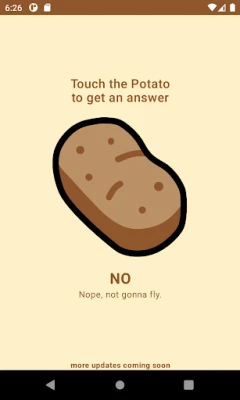 The Potato yana ba ku amsoshi marasa tantama da taɓawa ɗaya! Yana sauƙaƙa rayuwarku ta hanyar ba da amsoshin 'EH' ko 'A'A' a sarari ga kowace tambaya. The Potato shine alkalin da ba ya nuna bambanci don kowane yanke shawara. Ku 'yantar da kanku daga rashin yanke shawara, ku ji daɗin tabbas.