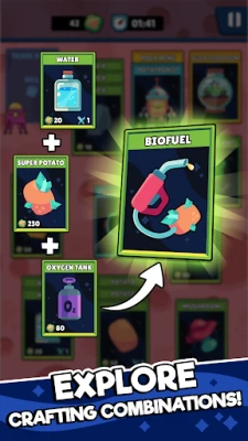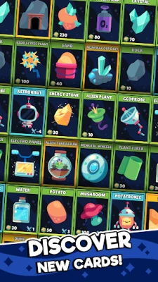 Bayan tattara albarkatu iri-iri daga yanayin Mars, aiki ne naku ku haɗa su da kyau. Ku ji daɗin haɗin albarkatun yayin da kuke gudanar da manufarku cikin nasara. Haka kuma, 'Potatoes on Mars' yana ba ku damar gano tarin katunan wasa masu ban sha'awa, kowanne da nasa fa'idojin ban dariya. Ku nutsu cikin jin daɗin gwaji da haɗa katunan daban-daban don gano sabbin dabaru masu daɗi. Bari ƙirƙira ku ta gudana yayin da kuke samun haɗe-haɗe masu ban mamaki da ke ƙarfafa ikon ku na dabarun wasa.
